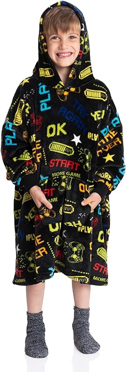 - 📏 Size It Right: Made for ages 4-13, this blanket hoodie levels up the comfort game. Use our size chart to ensure a boss-level fit. Machine wash cold, tumble dry low for easy upkeep.