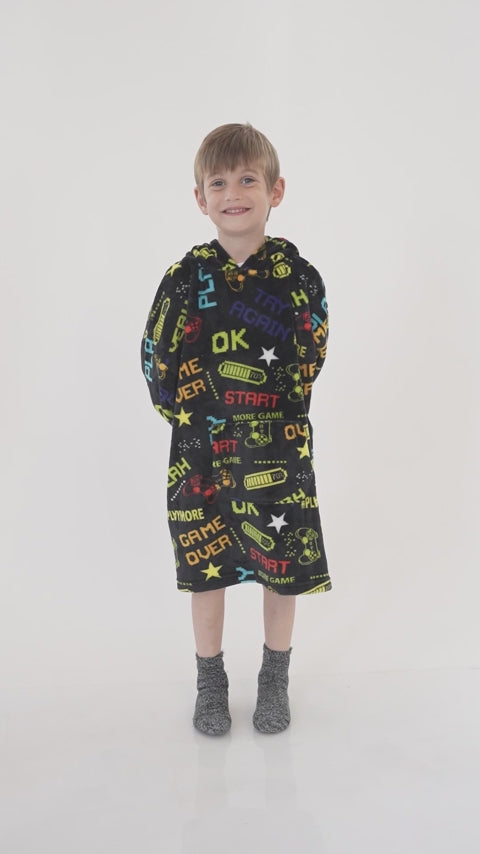 Get ready to hit the comfort high score with the Game-On CozyQuest Gamer's Fleece Hoodie Blanket! Specially designed for the young gaming aficionado, this hoodie blanket is the perfect piece of gear for every quest, battle, and race. Its soft fleece fabric ensures warmth and comfort during those all-night gaming marathons, while the fun gaming console print will have them feeling like the hero in their favorite game. It's not just a wearable blanket; it's a power-up for their relaxation time. Whether they're battling dragons or racing cars, our gaming hoodie blanket is the ultimate comfort companion. It's easy to care for and durable enough to handle many levels of adventure. Gift the Game-On CozyQuest to your favorite gamer and watch them glow with joy – it's the ultimate reward for any gaming victory!