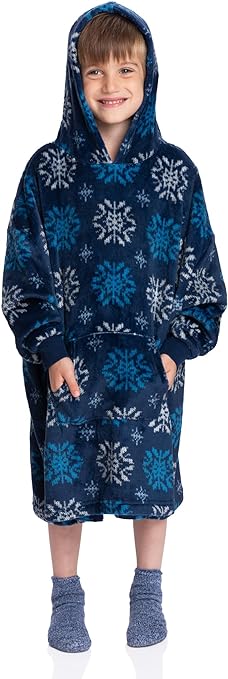 🔥 Toasty Warmth: Our plush fleece wearable blanket hoodie wraps your child in a warm embrace, featuring snug cuffs and a handy front pocket.