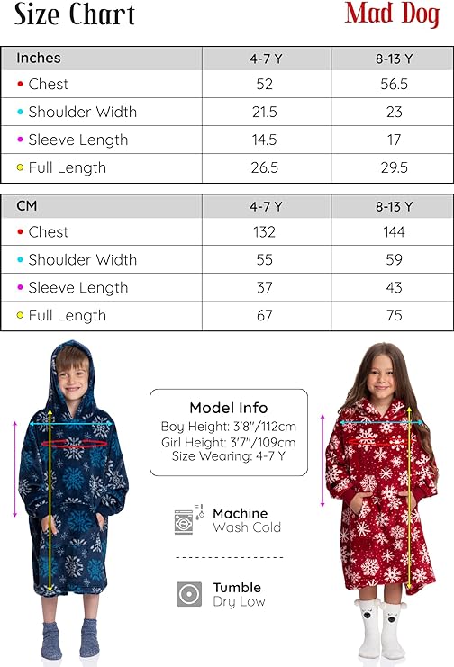 Discover the joy of warmth and comfort with Mad Dog's Wearable Blanket Hoodie for kids. This red Sherpa hooded jacket is not just a garment; it's a hug they can wear. Whether they're settling down for a movie night or need an extra layer on a camping trip, this blanket hoodie is their go-to for comfort. It's the cuddly, cozy gift that every child will love and cherish!