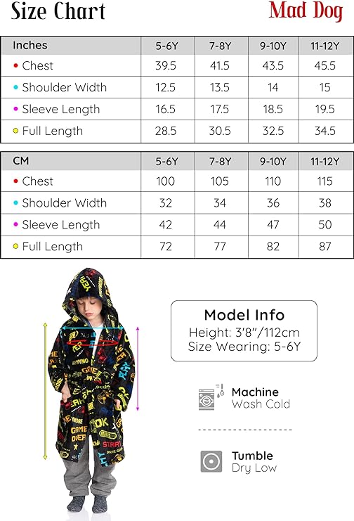 Welcome to a world where cozy comfort meets Jurassic adventures! The Mad Dog Fleece Dinosaur Kids Robe is more than just a garment; it's a journey back in time to a world of mighty dinosaurs. Crafted meticulously from soft fleece, every detail, from the vibrant dinosaur prints to the snug hood, promises warmth and wonder. Whether they're wrapping up after a bath or embarking on indoor adventures, this robe promises to be their favorite sidekick. 🦕💤 Dive into prehistoric comfort with Mad Dog!