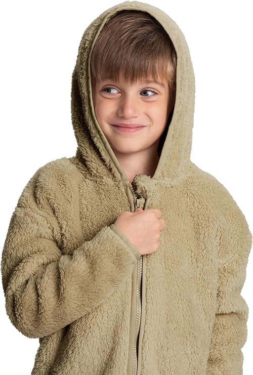 Elevate your boy's winter wardrobe with our Olive Mad Dog Sherpa Jacket. Crafted from cozy sherpa material, it features long sleeves and a secure front zipper for added protection. - 🏞️ Sherpa Comfort Everywhere: Perfect for school days, playground adventures, or woodland explorations. This lightweight jacket ensures both warmth and a stylish forest-inspired look, enhanced by the hoodie design.