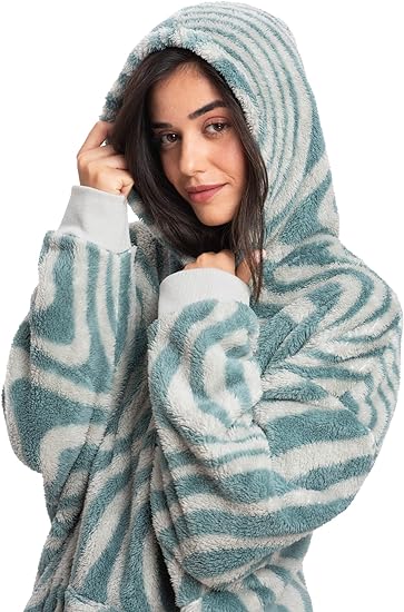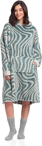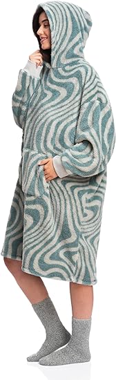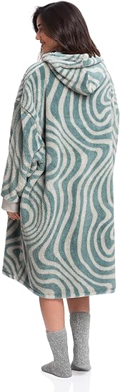 Warm Embrace Sherpa Hoodie Wearable Blanket - Green Waves