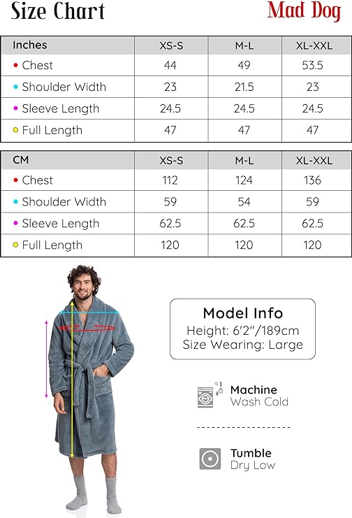 Experience the art of relaxation with the Mad Dog Men's Sherpa Robe in a unique Jeans shade. Infusing the timeless appeal of denim with the warmth of Sherpa, this robe is a winter essential for those who value comfort wrapped in style. Be it the start of a cold day or its end, our robe ensures you're enveloped in luxury and warmth. With unparalleled craftsmanship and attention to detail, immerse yourself in a world of comfort. πβοΈ Delight in the Mad Dog promise of quality and sophistication.