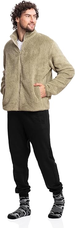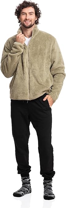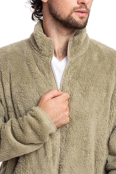 - π² Masterful Craftsmanship: Delve into the luxury of 100% Sherpa fabric with the Mad Dog Men's Olive Jacket. Designed for modern men, it features a practical front zipper, long sleeves, and toasty side pockets for ultimate coziness.