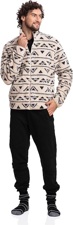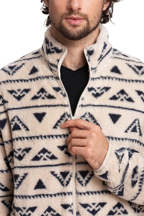 Men's Sherpa Jacket - Beige Print