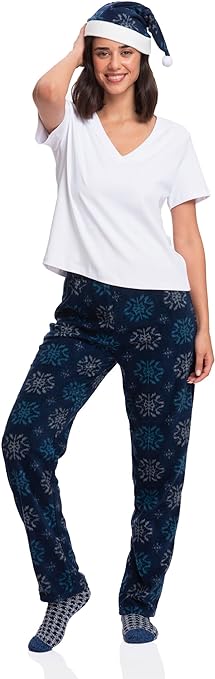 Women's Christmas Pajama Pants with Santa Hat - Blue