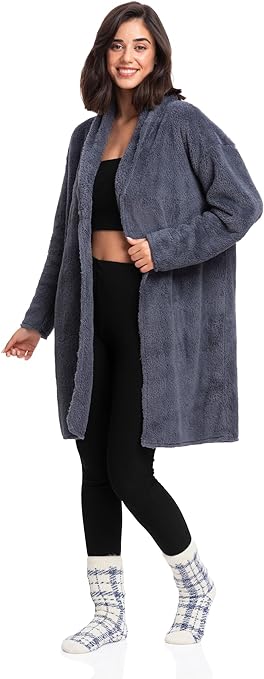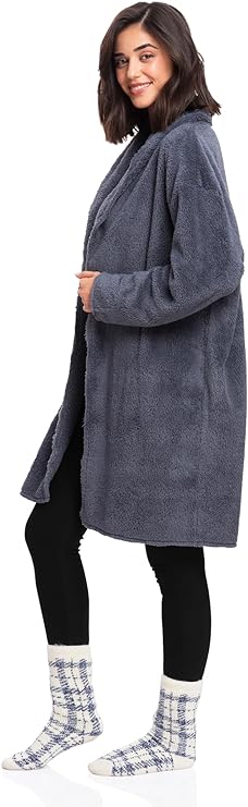 • 🌌 Blue Bliss & Comfort: Dive into comfort with our long-sleeve, knee-length Sherpa jacket in a soothing blue shade. Made from 100% Sherpa, ensuring softness with every wear.